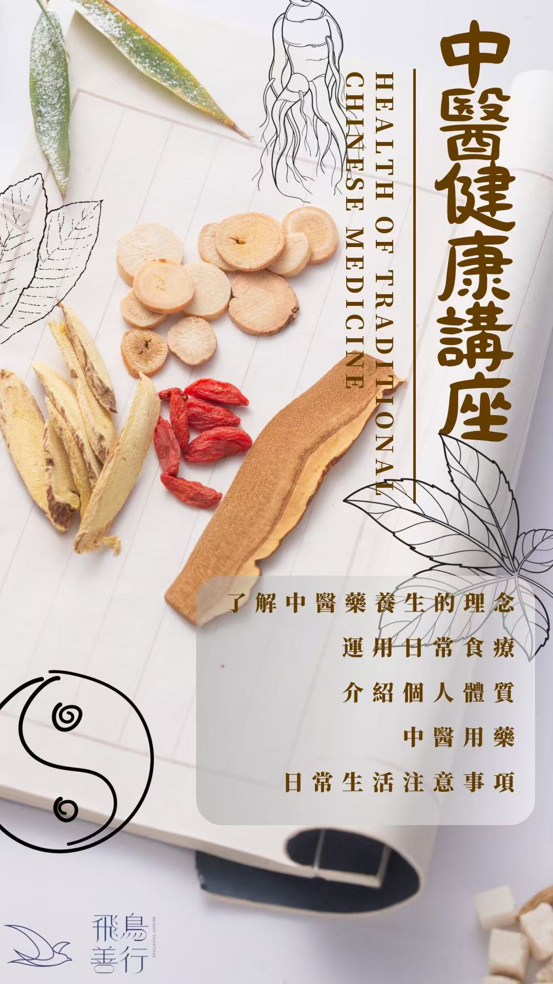 我們提供中醫健康講座,以淺白生活化方式講解中醫藥智慧,著重中醫師與參加者雙向模式及互動,讓健康養生簡易融入日常生活,人人都可化身成為自己的小醫師,適當運用中醫藥的優點,學會保養身體,維持健康,預防疾病侵襲!一系列不同的專題講座包括都市病、各類痛症紓緩方法、中藥材養生保健食療、穴位按摩指導、疾病預防、精神健康等等